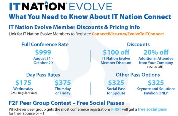 For more information about Evolve Discounts at IT Nation contact